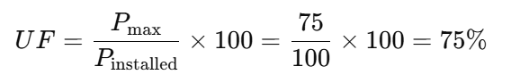 - 설비 용량이 100MW이고, 최대 수요 전력이 75MW일 때 설비 이용률을 구하시오.