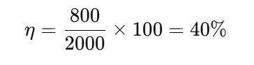 - 원자로에서 발생한 총 에너지가 2000MW이고, 발전소 출력이 800MW일 때 발전소 열효율을 구하시오.