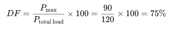 3. 총 설비 부하가 120MW, 최대 수요 전력이 90MW일 때 수용률을 구하시오.