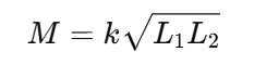두 개의 코일 L1, L2 사이의 상호 인덕턴스 M은 다음과 같이 정의됩니다.