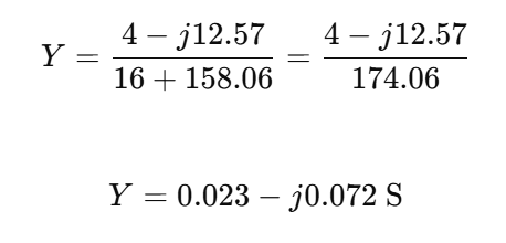 위에서 구한 임피던스를 이용하여 어드미턴스의 크기와 위상각을 구하라.