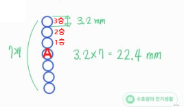 따라서 3.2 x 7 = 22.4 [mm]를 계산할 수 있다.