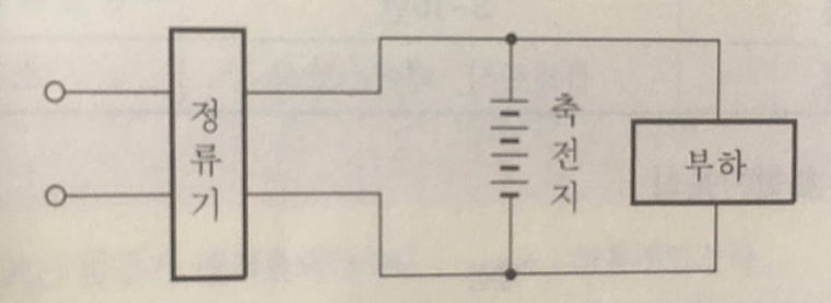 축전지의 자기 방전을 보충함과 동시에 상용 부하에 대한 전력 공급은 충전기가 부담하도록 하되, 충전기가 부담하기 어려운 일시적인 대전류 부하는 축전지로 하여금 부담하도록 하는 방식