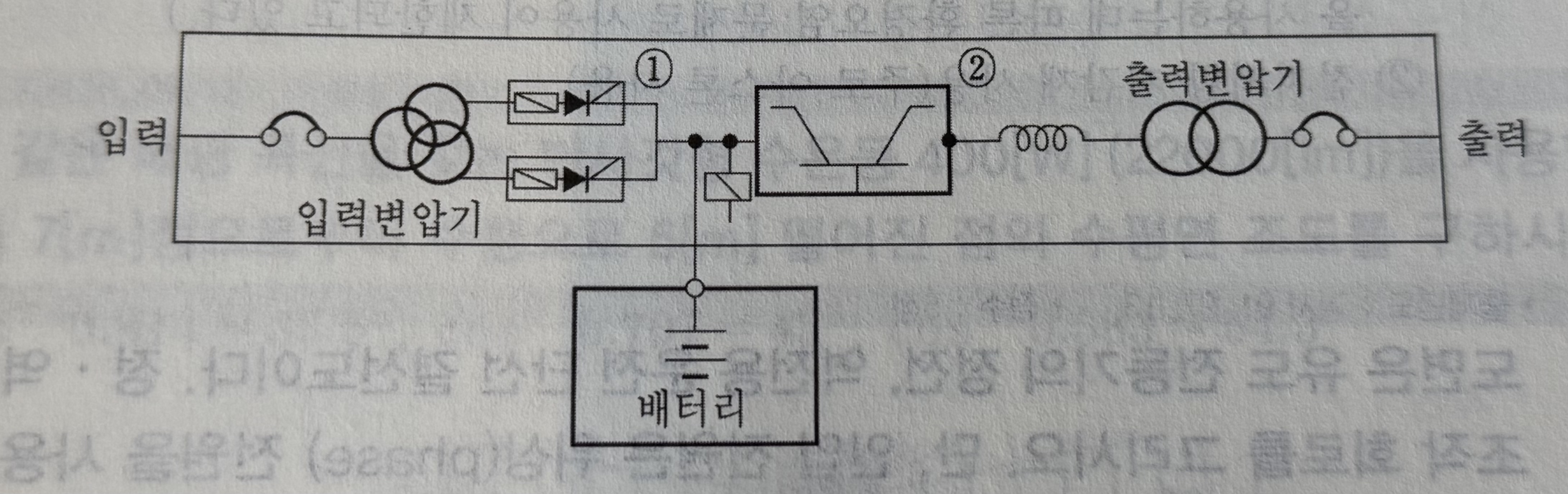 18. UPS 장치 시스템의 중심부분을 구성하는 CVCF의 기본 회로를 보고 다음 각 물음에 답하시오.
