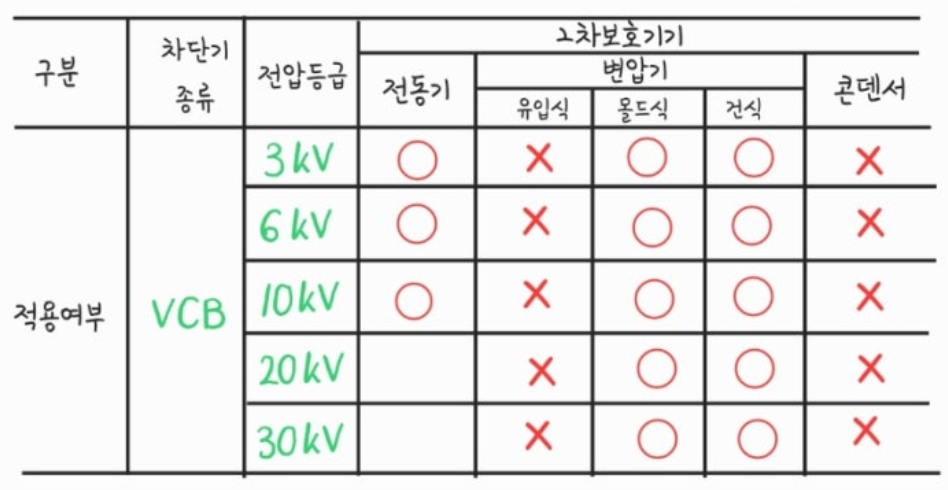 상기 표에서와 같이 VCB를 사용시 반드시 서지흡수기를 설치하여야 하나 VCB와 유입변압기를 사용시는 설치하지 않아도 된다.