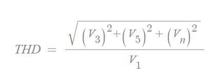 정의: 기본파 주파수 성분의 실효값에 대한 모든 고조파 성분에 대한 실효값 총합의 비율