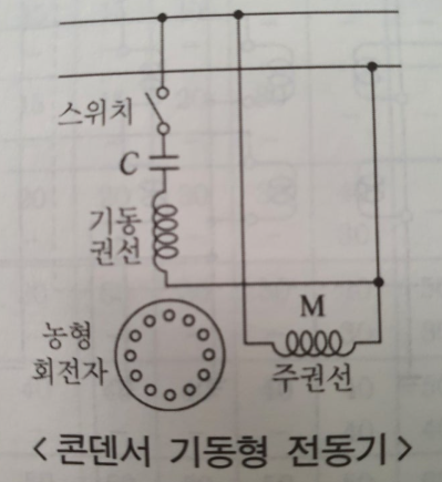 * 콘덴서 전동기는 분상 기동형 단상 유도 전동기의 한 종류로서 보조권선과 직렬로 콘덴서를 접속하여 기동 또는 운전을 하는 단상 유도 전동기이다.