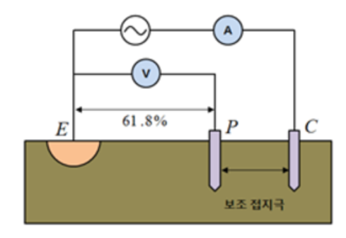 2) 반구모양 접지 전극의 접지저항을 측정할 때 E-C간 거리의 몇 [%]인 곳에 전위 전극을 설치하면 정확한 접지저항 값을 얻을 수 있는지 설명하시오.