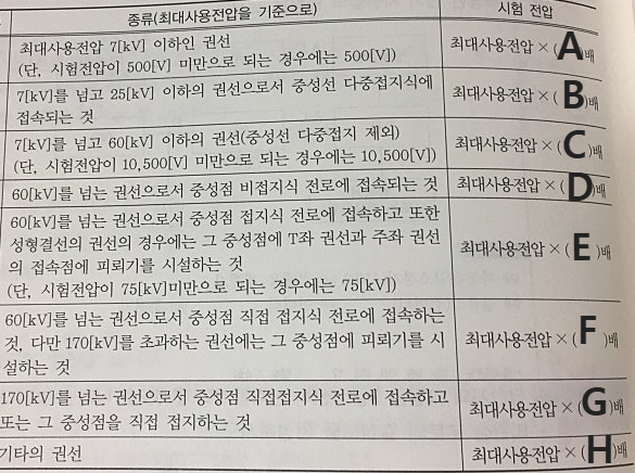 * 변압기 절연내력 시험전압 표