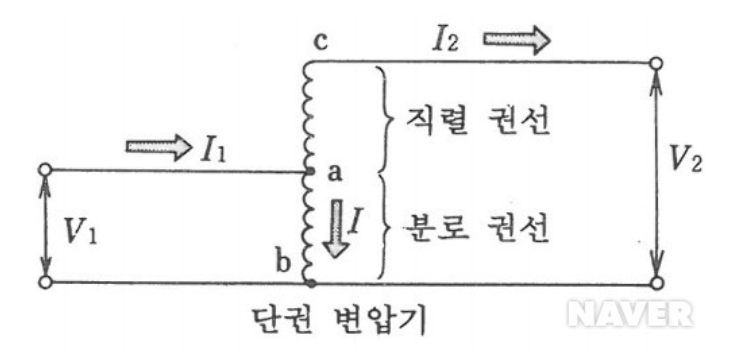 ※ 아래의 그림에서 분로권선은 단권변압기의 공통 부분 권선으로, 전류 I가 흐르는 권선이 분로권선이다.