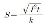 위 식에 I = 25000, t = 0.5, k = 159 대입해주면 S = 111.18 [mm^2]