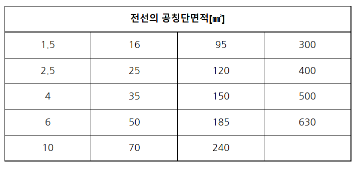 * 전선의 공칭 단면적 (외우는 것이 좋습니다.)