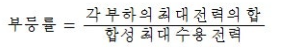 의미: 수용 설비가 동시에 사용되는 정도를 나타내며 주상 변압기 등의 적정공급 설비 용량을 파악하기 위하여 사용한다.
